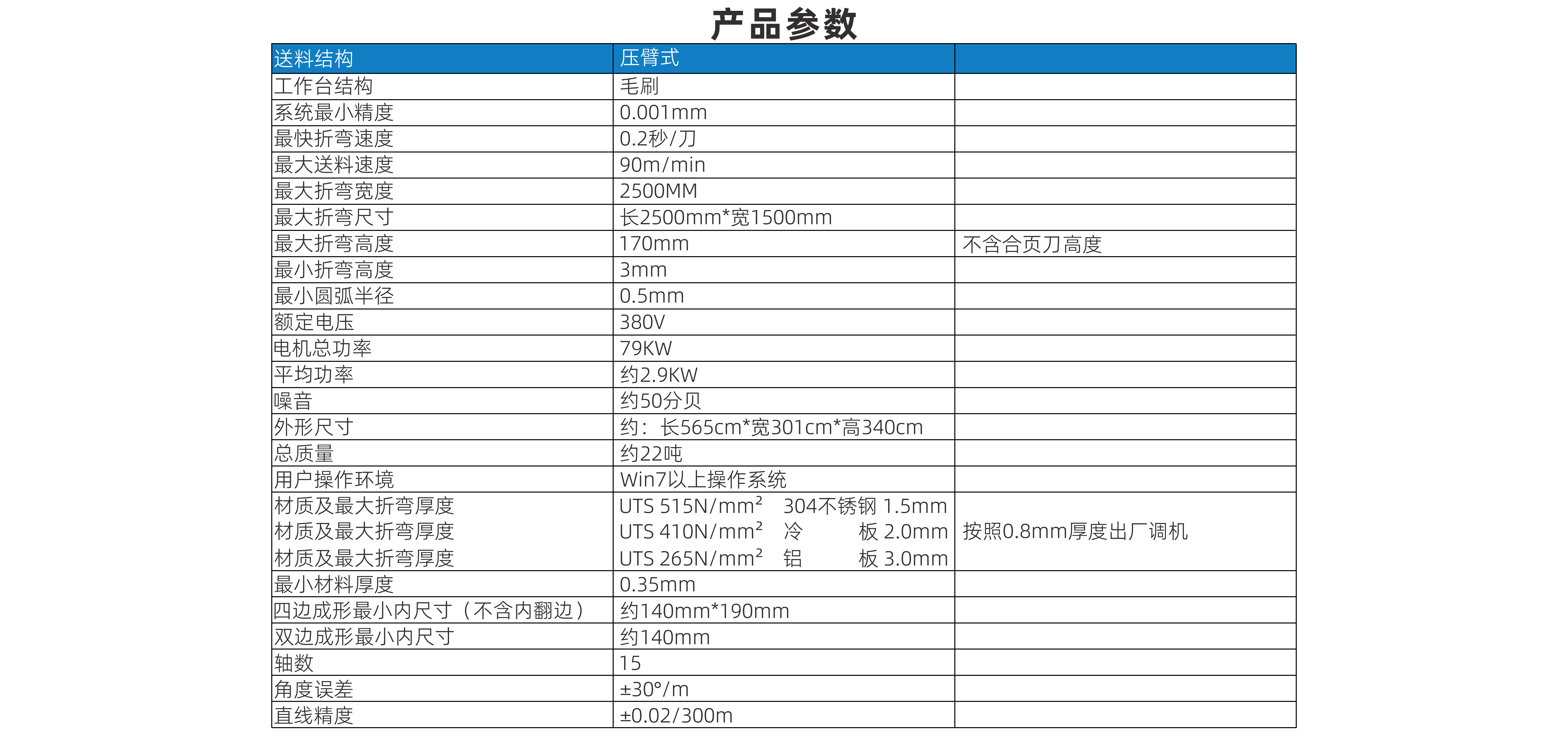 材質及最大折彎厚度